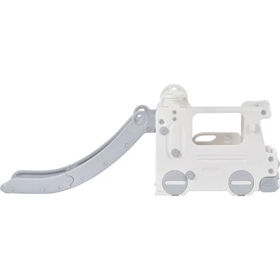 - [4 IN 1 Slide Set] This freestanding slide integrates 4 exciting play sections for kids. The two parts of the slide group have wide step pedals and smooth slides for children to slide down freely. The other part consists of a realistic bus model and a fun basketball hoop. This surprising combination can bring endless play fun to children.
