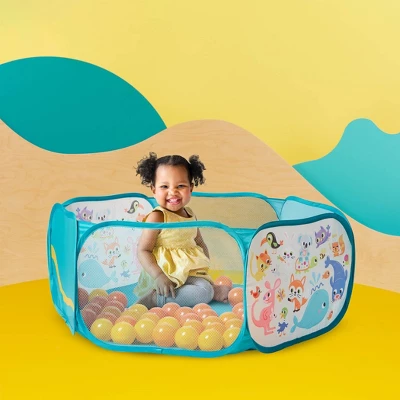 - Includes: This classic play set comes with a pop-up ball pit, 42 multicolored balls in a mesh bag, and 1 transport pouch.