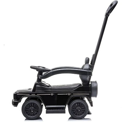 Take your child for a stylish ride around the neighborhood with the Best Ride On Car Kids Outdoor Stroller Mercedes G-Wagon 3 in 1 Push Car. If this baby stroller toy looks familiar, that’s because it’s modeled after the Mercedes G-Wagon, a high-end SUV that’s the perfect vehicle for your up-and-coming trendsetter. The kids push wagon car features the Mercedes logo and other authentic details, including a large padded steering wheel with working horn, padded seat with tufted faux-leather upholstery, and a molded 5th-wheel rear accent. Side safety rails and a tall backrest make sure the driver stays aboard while scooting around the driveway while the footrest make getting into and out of the driver’s seat easier. An included, detachable push handle makes it easy and comfortable for parents to steer the journey or allow their child to take control. At the park, the backyard, or around the neighborhood, the Best Ride On Car Kids Outdoor Stroller Mercedes G-Wagon 3 in 1 Push Car keeps your kids safe and entertained all afternoon long.