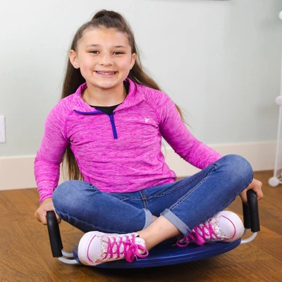 Spinning and rocking allow excess energy to be expelled helping to calm and relieve kids by meeting their sensory needs. Supports sensory seekers with active movement, stimulating the visual, vestibular, and proprioceptive senses. The 360 degree tilting rotation can have a comforting effect through spinning. The movement stimulates the imagination, improves balance and coordination. The 4-way balance; front to back and side to side improves balance, posture, coordination, and cognitive development. Wobble and spin to provide vestibular input. Made of strong thick plastic with 2 integrated foam rubber covered steel handles. Measures 22″ x 18″ x 8″ (56x46x20cm). Maximum Weight: 300 lbs (136 kg).
