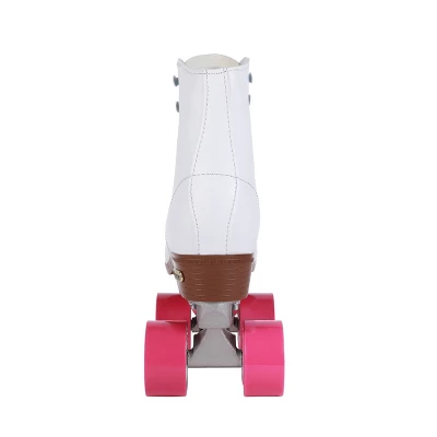 Chicago Ladies Rink Roller Skates combine a sturdy, high boot with eyelets and speed hooks to get you and the kids rolling. Lace ’em up and go-indoors or out. Sturdy construction gives you durability and top performance. White laces match the skates, but you can make them your own with different colors. Laced up, ready to roll.