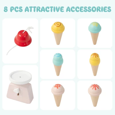 - Realistic & Interactive Role Play: This realistic grocery stand comes with sweet accessories including 6pcs ice cream toys, 1 weighting scale, 1 bell for a fully immersive experience. This educational supermarket toy provides a complete market experience that encourages role play, develops social skills and inspires imagination and creativity.