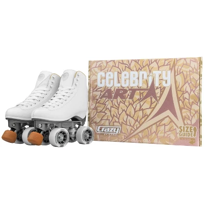The Celebrity Art is a artistic style skate with a classic, high white boot and professional level components. These features include 6-point plate fixing, Galaxy nylon plates, double reinforced eyelets, metal trucks, and steel kingpins. The adjustable toe stop allows you to customize them to your style and the slimline artistic wheels with ABEC 7 full-precision bearings provide for a smooth, gliding ride.