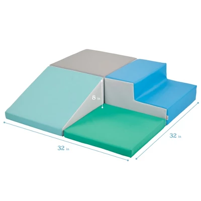 Young crawlers will have fun playing and exploring on the SoftZone Junior Little Me Corner Climber. The beginner climber includes a step, ramp, pedestal, and pad with endless opportunities for climbing, crawling, and social interaction. Scaled down in size, this mini foam playset is great for daycares, apartment homes, and smaller playrooms. With adult supervision, this playset is intended for use in a corner of a room for safe play that promotes and strengthens early muscle movement, enhances physical coordination, and balance, and helps overall body control. The climber keeps curious babies active and engaged while encouraging little hands and feet to explore the gentle foam climbing structure. The small foam shapes can be used independently or as a part of a fun obstacle course. As young children explore, they gain self-confidence while improving hand-eye coordination, agility, and core strength. Lightweight soft blocks are easy to carry allowing parents, teachers, and caregivers to quickly set up and stack for space-saving storage. Remove shoes to help preserve the longevity of the products. Keep playtime open-ended and fresh by creating custom configurations with ECR4Kids SoftZone Junior Mix n’ Match Collection pieces: Tunnel and Bump, Ramps, Slides, and Pedestal; sold separately. | High density foam keeps kids safe during play | Helps little ones develop important motor skills |
