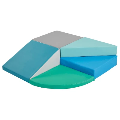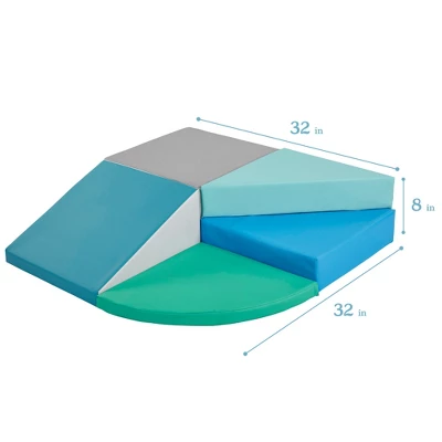 Give your little ones an exciting twist on play with the SoftZone Junior Tiny Twisting Corner Climber. The beginner climber includes tiered steps, a ramp, a pedestal, and a pad with endless opportunities for climbing, crawling, and social interaction. Scaled down in size, this mini foam playset is great for daycares, apartment homes, and smaller playrooms. With adult supervision, this playset is intended for use in a corner of a room for safe play that promotes and strengthens early muscle movement, enhances physical coordination, and balance, and helps overall body control. The climber keeps curious babies active and engaged while encouraging little hands and feet to explore the gentle foam climbing structure. The small foam shapes can be used independently or as a part of a fun obstacle course. As young children explore, they gain self-confidence while improving hand-eye coordination, agility, and core strength. Lightweight soft blocks are easy to carry allowing parents, teachers, and caregivers to quickly set up and stack for space-saving storage. Remove shoes to help preserve the longevity of the products. Keep playtime open-ended and fresh by creating custom configurations with ECR4Kids SoftZone Junior Mix n’ Match Collection pieces: Tunnel and Bump, Ramps, Slides, and Pedestal; sold separately. | High density foam keeps kids safe during play | Helps little ones develop important motor skills |
