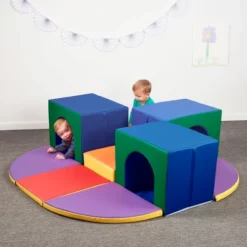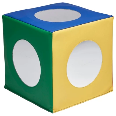 Peek-a-boo, I see me! Infants and babies will love playing and learning with the SoftZone Mirror Cube. Designed for everyday use in daycares, preschools, and early childhood learning environments and perfect for home, this sensory foam cube is made for tummy time or sit-and-play. Constructed with child-safe mirrors, this soft sensory toy encourages self-discovery as infants explore bodies, facial expressions, and gestures while encouraging communication and social skills. Babies have fun with sensory mirrors and enjoy watching themselves as they discover their own reflection through movement and develop self-awareness. As children grow, the lightweight cube is fun for toddlers to push and maneuver and encourages important gross motor development. The bright colors aid in early color recognition and cognitive skills. Mirrors add depth and dimension to playtime and are a great way to capture children’s attention and spark imagination and creativity. The dense foam core is covered in soft vegan leather with a non-slip side for added stability during play; adult supervision is required. Create a cozy sensory play space by pairing the soft foam block with ECR4Kids SoftZone Activity Mats to create a baby activity center; sold separately.