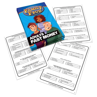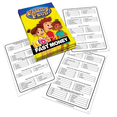 Includes: 75 Kids Face Off Cards, 75 Adults Face Off Cards, 25 Kids Fast Money Cards, 25 Adult Fast Money Cards. 1 Dry Erase Scoreboard, 1 Dry Erase Marker, 1 Instruction sheet