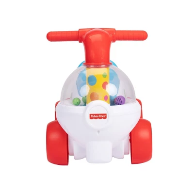 This Fisher-Price classic Corn Popper Ride on with Working Corn Popper is a popping good time! Featuring many colorful popcorn balls that will pop as your child rides with forward and backward motion. The clear dome at the front of the Corn Popper ride-on provides your child with a front seat to watch all of the corn popping action. Perfect for Toddler Boy’s and Girl’s, and a great way to help foster and develop motor skills! Create magic as you ride, one pop at a time! Recommended for toddlers ages 1-3.
