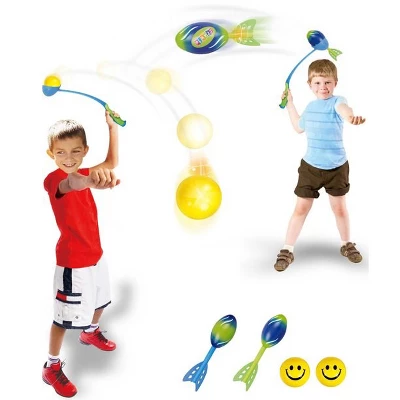 - Includes 2 launchers, 4 rocket footballs, attached 2 wings to make it fly with power 3 smile soft balls