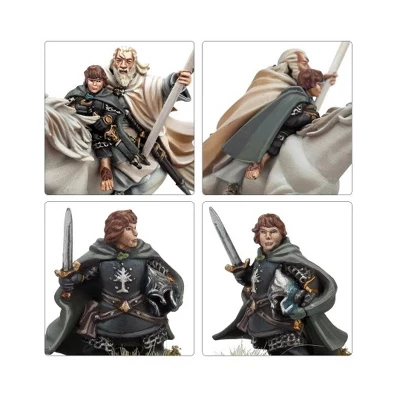 This multipart plastic kit contains the components necessary to assemble Gandalf the White and Peregrin Took, both on foot and mounted on Shadowfax. When mounted, you have the option to remove Peregrin Took, leaving just Gandalf on Shadowfax. On foot, Gandalf wields Glamdring and his wizard’s staff, while Peregrin Took is clothed in the uniform of the Citadel Guard of Minas Tirith with his helmet in his left hand.These miniatures come as 14 components, and are supplied with 2 Citadel 25mm Round bases and a Citadel 40mm Round base. Miniatures are supplied unpainted and some assembly may be required.