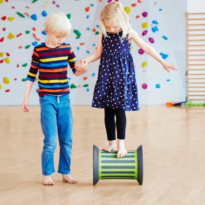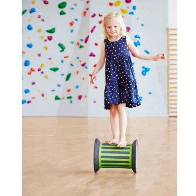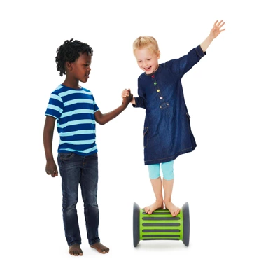 The Roller is a beautiful new conceptualization of a fundamentally challenging motor activity object. Leave it out, and you will see both children and grown-ups tempted to test their skills by stepping up and trying to set the Roller in motion. It offers a progressive motor skills challenge, from small kids just managing to keep their balance with the support of a friend or a hand rail, to older children pushing the boundaries of what they can do without falling off. Whether it is used for play or in therapy, the Roller will stimulate the primary proprioceptive sense, as well as the vestibular and tactile senses. The Roller is safe to use, as the compression of its rubber tires naturally reduces the speed while making play virtually silent and protecting the ground surface from damage. The rubber tread provides a safe grip and offers additional tactile stimulation when rolling with bare feet. Available with or without sand.