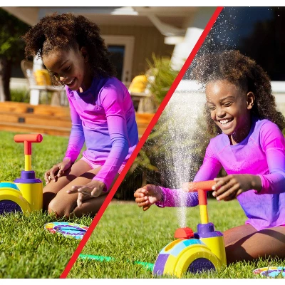 Push your luck… and get SPLASHED with Hasbro Pie Face Splash Game! All new from WowWee, Hasbro’s classic Pie Face game is now a no-mess water sprinkler game. Fun for players ages 6+, Pie Face Splash Game is easy to set up in your backyard. Start playing in four easy steps: connect the hose, spin the spinner, push the handle, and try to complete your turn without getting sprayed. With each pump of the handle, there’s a chance your turn can end in a splash! Earn points by staying dry! Still dry? You earn 1 point for each pump of the handle. The first player to 21 points wins! Compete against friends or play on your own, this outdoor sprinkler game is fun for the whole family. Included in your Pie Face Splash Game is 1 Pie Face Splash Game sprinkler unit, 1 Waterproof Spinner, 1 Hose Adaptor, and an instruction manual.