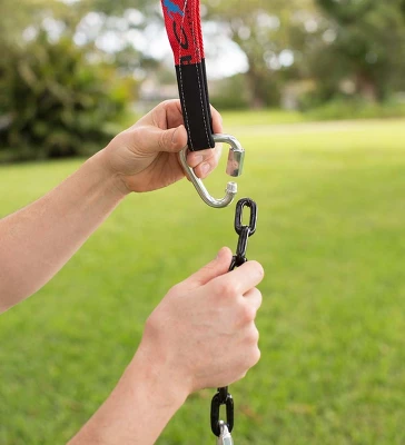 - Adjust the swing’s bounce by adding or removing the included bungee straps