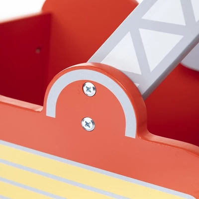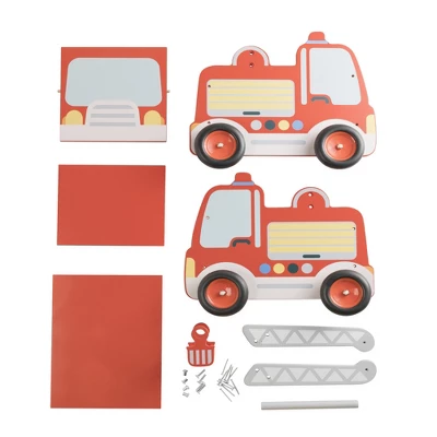 - Durable, colorful wooden fire truck measures 17¼”L x 15″W x 19¾”H