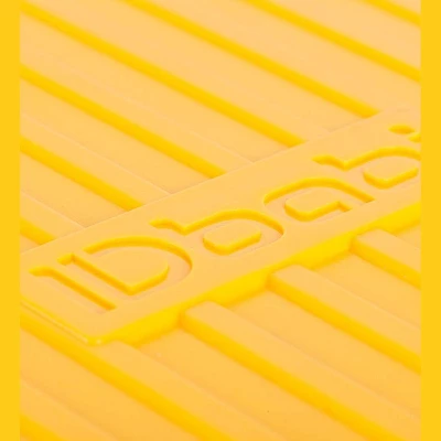 - Stand, sit, crouch, or kneel on the electric yellow ridged plastic platform with navy blue base