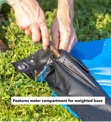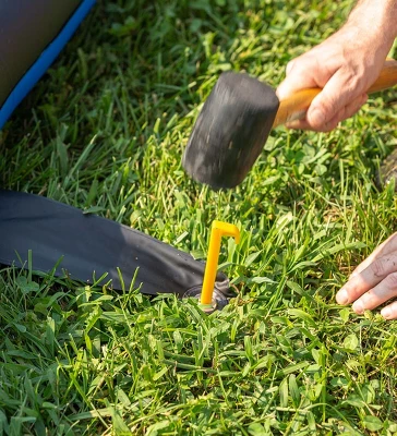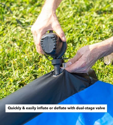 - Also includes two inflatable speed boards and six ground stakes; max. weight 110 lbs.