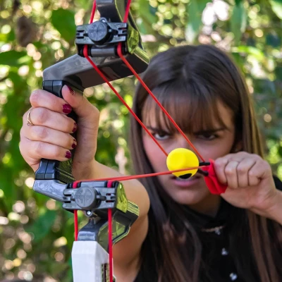 - Choose between "ultimate distance" or "rapid-fire" by quickly switching out the bungee.