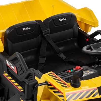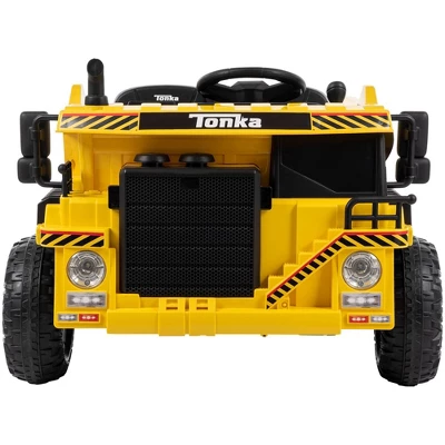 - Feature: Tonka Dump Truck Licensed battery ride-on toy for kids with working dump bed!