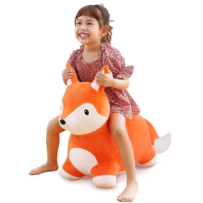 Bouncy Pals Fox can be a fun partner to help toddlers strengthen muscles, develop gross motor skills, and improve balance. By grasping the ears and riding on the fox, little kids can learn how to maintain balance. It also helps burn off extra energy and makes exercise fun. Hopper Fox with soft plush cloth has zero friction on your kids’ skin. And the low center gravity design makes it more safe. Play anywhere, suitable for summer vacation, parties, classrooms, indoors, outdoors, and more. Easily deflates for storage or travel. (Manual air pump included) Easy to Wash: Zipper design so you can easily remove its cover and wash it. Cover can be either Hand or Machine washed. Inflatable ride on fox is a great birthday present or Christmas gift for unisex kids, toddlers and preschoolers. It is also a good companion on the road of children’s growth.