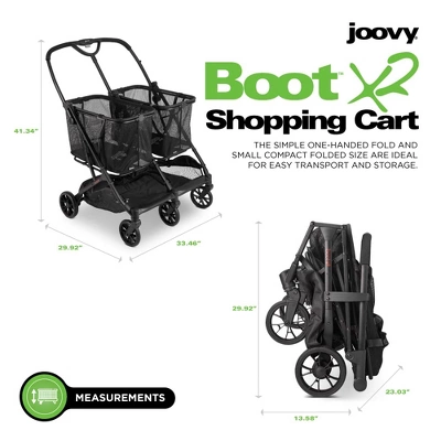 The Boot X2 is not just for shoppers – holding 122 lbs., this state of the art, luxurious cart assists anyone in carrying belongings from place to place. The Boot X2 simplifies life – No more plastic bags, shoulder pain or red, aching hands from heavy lifting. And forget about multiple trips to and from the car. Let the Boot X2 do it for you!Its lightweight, compact aluminum frame weighs in at just 25 lbs. and fits through doorways. The included reusable mesh baskets are removed from the frame and link back on effortlessly with a magnetic attachment. These dual bags can be used with the frame or without and can hold up to 50 lbs. each! The Boot X2’s swivel wheels make maneuvering and turning trouble-free.When you are ready to unload it, simply brake, fold and go! The one-handed folding technology gives you an easy pick-up and keeps the frame as clean as possible. The Boot X2 provides the convenience of moving anything you need it to, like the original Boot, but doubled!