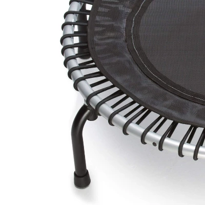 For big movements and compact storage. The JumpSport 350 Fitness Trampoline gives you the freedom to move, delivers efficient cardio workouts, and boosts your fitness level and energy.JumpSport Fitness Trampolines deliver the smoothest, deepest, and most supportive low-impact bounce on the market. Featuring EnduroLast Elastic Cords, uniquely formulated to stretch 2x resting length, compared to standard bungees that only stretch as little as 1.25x resting length. The 350 has a 32.5 inch jumping surface, arched legs, and 3 easy-to-adjust firmness settings. Most folding trampolines wiggle and shake or use heavy welded metal parts which add weight and undermine portability. The JumpSport hinge is light but creates a super stable, rigid frame rail for confident and secure jumping.Workout without worry. Step up with confidence and add versatility to your fitness routine with the arched-legged trampolines and handlebar​ accessories. No-tip arched legs are safe, reliable, and allow you to stack multiple units in a commercial setting. The mat extension skirt and petal designs protect jumpers from stepping on the cords, and provide more exercise space, while the trampoline legs and 12.5 inches high frame are stable enough for push-ups, dips, and more. Low-impact exercise has never been easier with the JumpSport Handle Bar Accessory for 39-Inch Arched Leg Fitness Trampolines. The sporty handlebar is constructed out of durable steel for peace of mind when you work out.The trampoline has a durable lightweight design to facilitate a wide range of modalities and for easy storage. Whether you workout in a studio, apartment, office, or tiny home, the easily mobile JumpSport Fitness 350 trampoline offers the variety you need to workout whenever, wherever.