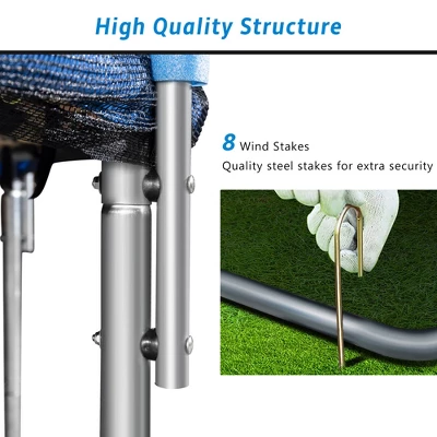 - [Multiple Wind Stakes] Made of weather-resistant galvanized steel, the included 8/12 wind stakes are sure to act as resistance to help stabilize the trampoline in different weathers.