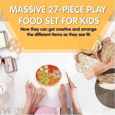 - ENCOURAGE CREATIVITY AND IMAGINATION IN KIDS: This play food pizza set will get your little baker excited in the kitchen as they explore different toppings, slices, and pizza cutting techniques. Pay for the fake toy food and watch your kid come to life with this engaging pizza toy