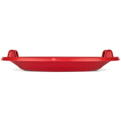 Pass on winter nostalgia to the next generation with Lucky Bum’s Circular Saucer Snow Sled. Snow days were made to create fast-paced sledding memories and there’s nothing more smooth than a saucer sled. This slider comes in a bright appealing red that is sure to catch eyes and turn heads as you zoom past. Made with durable, lightweight plastic with no BPA or Phthalates, this flying saucer lasts through many sledding trips and gleeful seasons. Rolled contoured edges stabilize your ride for safety and strength. Molded handgrips give you stability; at the speeds, you’ll be traveling, you’re going to need it. Recommended for ages 4 and up, this slider is great for children and adults alike. Check any of the other assortment of colors, and buy several to race your children.Build lasting snow day memories this winter with a Flexible Flyer Flying Saucer and you’ll be smoothly gliding down the hills in laughter.