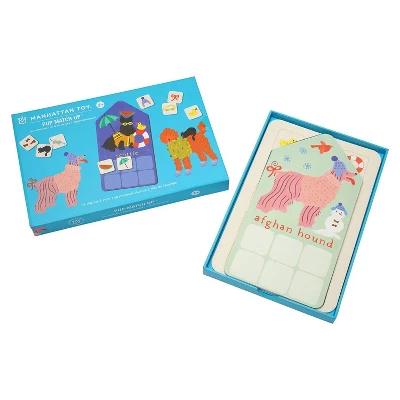 Have fun searching for doggy accessories in this stylin’ matching game! Choose your pup and take turns finding the six matching tiles to the accessories on your pup. How to play: choose one of the five pup cards, place all accessories tiles pattern side up, take turns finding the matching accessories found on your pup card. The first player to find all six accessories wins! Includes 35 pieces – 5 pup cards and 30 accessory tiles. All pieces store nicely in the game box with a sliding tray. Encourages motor development, fostering memory skills and cognitive development. Since 1978, Manhattan Toy has been making award-winning, high quality, educational toys for your baby, toddler or kid. From infant toys and baby toys to sensory development toys, our goal is to provide the safest and best toys available. All of our products, from the newest concepts to our time-tested classics, are innovatively designed to inspire imaginative play and are routinely safety tested to pass strict CPSC, ASTM, EN71 and Health Canada safety standards..