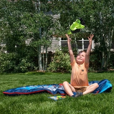 The Marvel Spiderman 5-piece Camp Kit includes all the essentials needed for outdoor adventures and indoor slumber parties: a dome tent, sleeping bag, drawcord backpack, LED flashlight and carabiner compass. The 4 ft. x 3 ft. tent features a simple two-pole setup and convenient carry bag. The sleeping bag has a full-length zipper that opens flat to work as a blanket, with breathable fabrics and cozy insulation to maintain a comfortable temperature all night long. The roomy, drawcord style backpack with mesh pocket and padded shoulder straps ensures no toy, stuffy or book needs to be left behind. Finally, no adventure is complete without a flashlight and compass, so your little hero can lead the way! You’ll be ready for any adventure your little one can dream up with the Spiderman 5-piece Camp Kit.