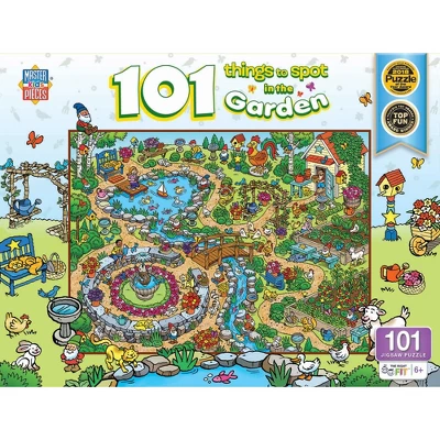 Let the search begin with this 101 Things to Spot in the Garden puzzle. Can you find them all? Good luck! This puzzle is 101 pieces and 19 inches x 14 inches in size. Look for The Right Fit® puzzles collection and make sure your little one gets the correct piece count and size for a good challenge for their age. This puzzle is the right fit for ages 6+.