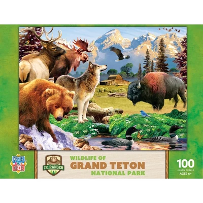 - The Grand Teton National Park puzzle features iconic wildlife of the park, including a grizzly bear, bison, moose, and many more!