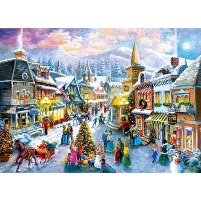 These MasterPieces 19.25″ x 26.75″ 1000pc of Home for the Holidays features presents are donated around the Town Center Christmas tree every year while carolers celebrate the season. Shoppers make a rush for last minute presents, or stroll the winter streets enjoying the lights glistening.. Holiday Puzzles are the perfect way to get into the holiday spirit, and the perfect holiday presents for friends and family. Cozy up around the table for some holiday family fun! To reduce their impact on our environment, the chipboard used in these puzzles is made of recycled material