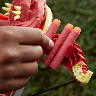 - INCLUDES 6 NERF ELITE DARTS AND DART STORAGE: This D&D crossbow comes with 6 Official Nerf Elite foam darts. There’s dart storage under the dragon’s wings to keep backup darts within reach for reloads