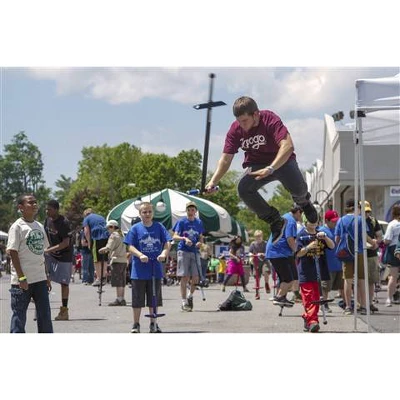 Combining the classic pogo form for traditional bouncing with unparalleled sport level performance and durability, these pogos provide hours of fitness training along with trick and stunt skill development. • Smooth action progressive spring for maximum bounce and wider weight range • Replaceable Sphere tip for improved balance, stability and professional performance • Pressed steel footplate (Grom) and welded diamond footplate (Flight) provide superior durability while performing advanced tricks and easily stand up to the abuse • Comfortable and safe rubber hand grips
