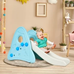 Costway Freestanding Baby Slide Indoor First Play Climber Slide Set For Boys Girls PinkBlueGray