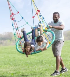 HearthSong 40-Inch Red Giant Rectangular Rope Platform Tree Swing With Padded Steel Frame