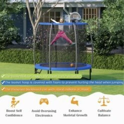 Costway 55” Kids Trampoline Recreational Bounce Jumper W/Safety Enclosure Net Heavy-duty