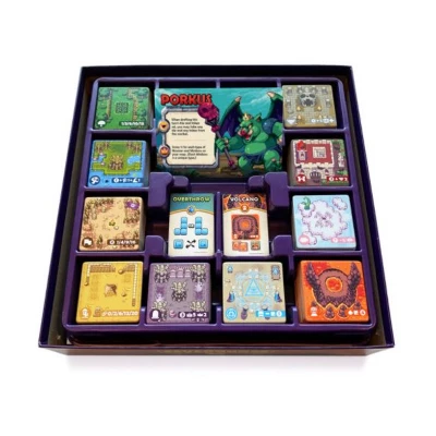 Overboss is an all-new game featuring the retro villains of Boss Monster! Emerge from your dungeon to conquer the overworld in this game of tile drafting, map building, and set collection. But aspiring Overbosses must be crafty as well as fierce: each terrain type is scored differently, and your monsters must be arranged strategically to maximize their value. Designed for players of all skill levels, Overboss is the perfect way to introduce video game fans to board games.Contents: 100+ full-color tiles, 100+ tokens, 4 gameboards, rulebook, cards.