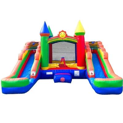 - Pogo Bounce House Crossover Double Water Slide Bounce House Combo, No Blower
