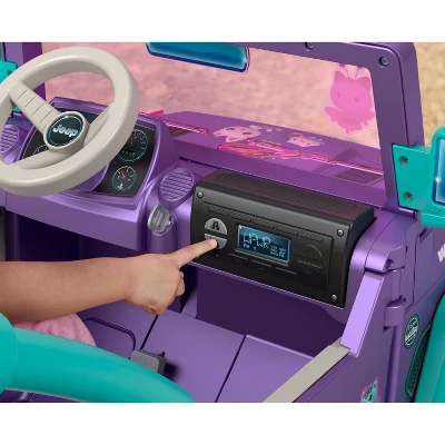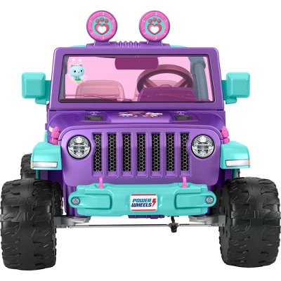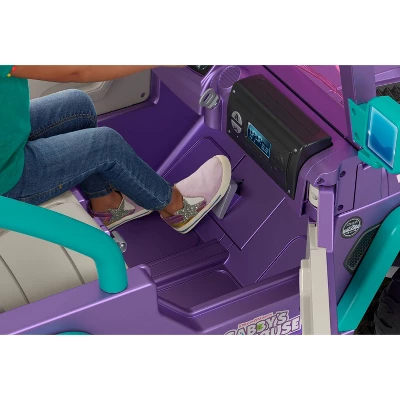 - Battery-powered ride-on toy styled like a real Jeep Wrangler with Gabby’s Dollhouse character graphics & fun colors