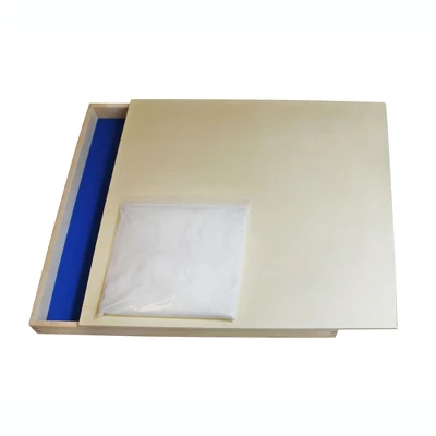 Your students will love tracing letters and whole words in our jumbo-sized sand tray! It’s also the perfect setting for all sorts of make-believe dioramas and action adventures featuring their favorite toys and manipulatives. Solid wood tray. 18″ x 18″ with dark blue laminate bottom. Includes lid and fine grain Safe Sand;, free of crystalline silica.