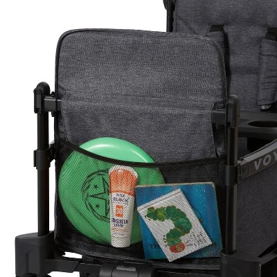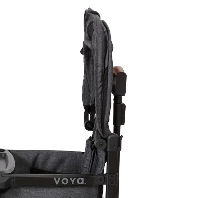 The Voya™ Stroller Wagon is your home base on the go. This all-in-one family vehicle passes both the stroller and toy safety standards, making this the ideal replacement for your double stroller. Comfortably carry two kids with built-in padded seats, spacious footwell, removable snack tray, internal storage pockets, and 5-point comfort safety harnesses. The low, rigid side walls allow for easy in and out while keeping kids safe and secure. There’s space for everything with the parent caddy, XL rear storage bag and removable parent cupholders on the frame. The lightweight aluminum frame is durable and easy to fold for storage or transportation, no need to remove the seats or the snack tray! The fold-away push handlebar is height adjustable and the Never Fall™ wagon pull handle stays upright when not in use. Both handlebars have premium vegan leather for added comfort. Key safety features include 5-point safety harnesses, rear parking brake, and UV protection canopies. The canopies have peek-a-boo windows and store on the wagon when not in use. Recommended for kids 6 months and up. Maximum weight capacity 120 lbs