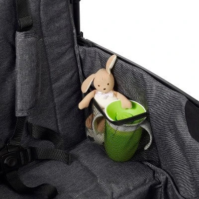 - XL rear storage bag, parent caddy on push handle, and two removable cupholders