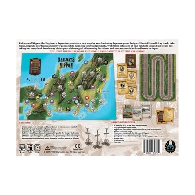 You need the Railways of the World Base Game to play this Expansion. This is not a standalone item or an expansion to Railways of Nippon. Railways of the World: Nippon Expansion is for those experienced with the ROTW series who own the base game and components needed to play the expansions. This expansion offers a package of the Railways of Nippon Board, the Railways of Nippon Operations, Baron, and player reference cards, the Railways of Nippon score track, the Railways of Nippon scoring disc, the 24 page rule book compendium, ROTW Bag, and 20 new ECMs. Railways of Nippon is a new map of Japan designed by the Japanese game designer Hisashi Hayashi. The game takes place during Japan’s rapid industrial growth during the Meiji era, where you take the role of one of the entrepreneurial railroad baron of that time. You plan and lay track, upgrade your trains, sell goods to distant cities, and use operation cards to become the richest railroad baron of Japan! Balance your budget wisely, since taking too many bank bonds can ruin your business over the course of the game. Also, watch the competition closely because you can only use the track that you laid down personally to trade. Since the island of Japan is mountainous and narrow there is often not enough space for everyone to lay their track where they want. Foreseeing your competitor’s moves and well thought out moves will ensure you an undisputed railroad empire! Components:(1) 24-page Rule Book Compendium(1) Game Board(1) Score Track(56) Playing Cards: 42 Operations Cards, 10 Baron Cards and 4 Player Reference Cards(1) Wooden Train Marker – first player marker(4) Wooden Scoring Disks: teal, white, gold, orange(20) Empty City Markers: brown(1) Cloth Bag w/RotW Logo