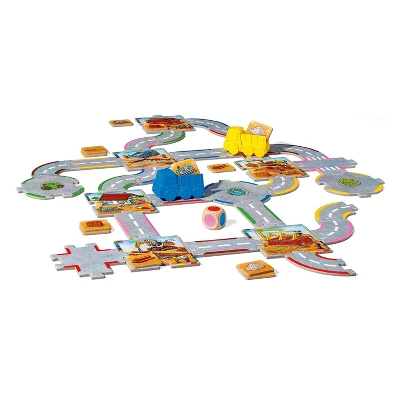 - High Quality Components – 1 color die, 2 truck movers, 24 road puzzle pieces, 6 construction sites, 12 material tiles, and instructions.