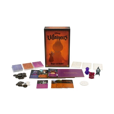In Disney Villainous: Bigger and Badder, players take the role of a Disney or Pixar Villain and compete to be the first to achieve their sinister objective. Use your Villain deck—full of minions, useful items, and dastardly effects—to help you towards victory. Watch out for your opponents; they can play cards from your Fate deck—like pesky Heroes—to get in your way! The first Villain to complete their unique, story-based objective wins!