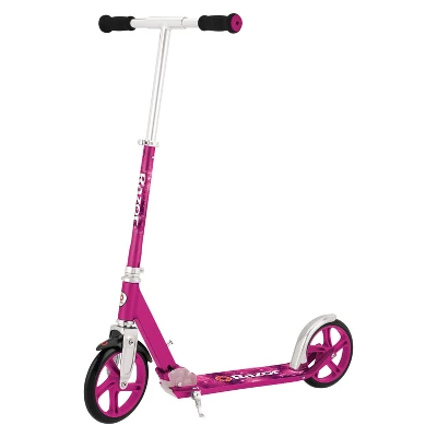 The Razor A5 Lux joins a kick scooter line well-known for its smooth ride, extra-large urethane wheels and cool profile make for the smoothest ride around. Anodized finish features bold colors and attention-grabbing graphics. Quick and easy to fold and ready to go, the Razor A5 Lux has a superstrong aluminum t-tube and large deck to comfortably support riders up to 220lbs (100 kg)