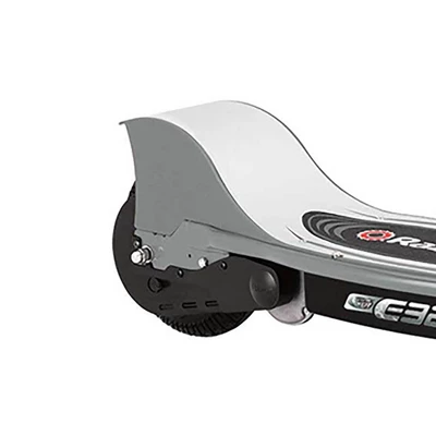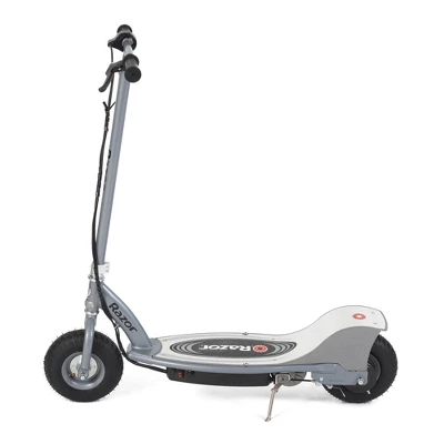 Scoot around town on the cool and powerful Razor E325 Motorized Scooter. Twist the throttle to crank up the fun with this scooter that will be the talk of the neighborhood. The E325 super-sized deck and frame are built to stand up to the adventurous abilities of responsible teen and adult riders. Featuring an all-steel frame and fork for durability, the large 9-inch pneumatic front and rear tires will have you flying safely, even on rough surfaces. Leave other riders in the dust with the high-torque, electric punch, and hit speeds up to 15 miles per hour for up to 40 minutes of continuous fun. Rejuvenate with the rechargeable battery that has a short charge time. Put the power and control in your hands with the twist-grip acceleration control and hand-operated rear brakes. Be prepared to look fly and feel the wind in your hair on the Electric Motorized Scooter from Razor.