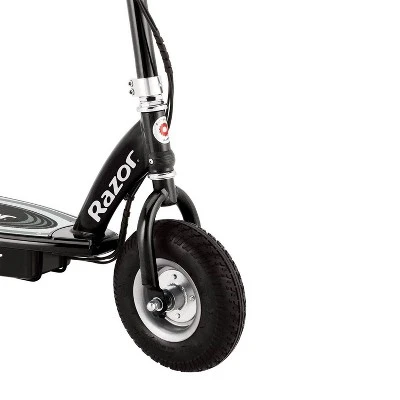 Scoot around town on the cool and powerful Razor E325 Motorized Scooter. Twist the throttle to crank up the fun with this scooter that will be the talk of the neighborhood. The E325 super-sized deck and frame are built to stand up to the adventurous abilities of responsible teen and adult riders. Featuring an all-steel frame and fork for durability, the large 9-inch pneumatic front, and rear tires will have you flying safely even on rough surfaces. Leave other riders in the dust with the high-torque, electric punch, and hit speeds up to 15 miles per hour for up to 40 minutes of continuous fun. Rejuvenate with the rechargeable battery that has a short charge time. Put the power and control in your hands with the twist-grip acceleration control and hand-operated rear brakes. Be prepared to look fly and feel the wind in your hair on the Electric Motorized Scooter from Razor.